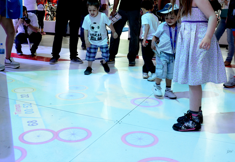 Pensamos, diseñamos, desarrollamos e implementamos el juego “Pisalas y ganá” con trackeo de pies con Kinect para Expo Bici 2015.