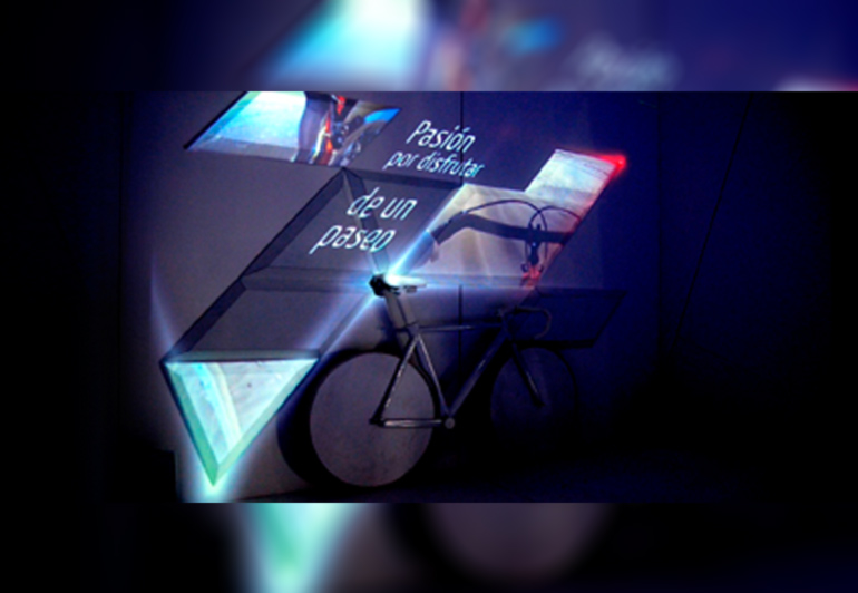 Llevamos a cabo el proyecto Mapping para Expo Bici 2015, desde la creatividad, la producción y edición audiovisual, diseño gráfico, animación e implementación de mapping sobre una bicicleta, hasta el armado de pantalla con volúmenes para la empresa Imperial Cord.