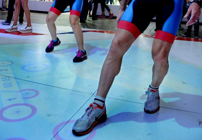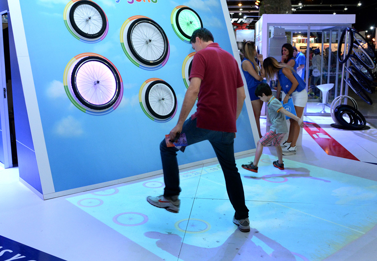 Pensamos, diseñamos, desarrollamos e implementamos el juego “Pisalas y ganá” con trackeo de pies con Kinect para Expo Bici 2015.